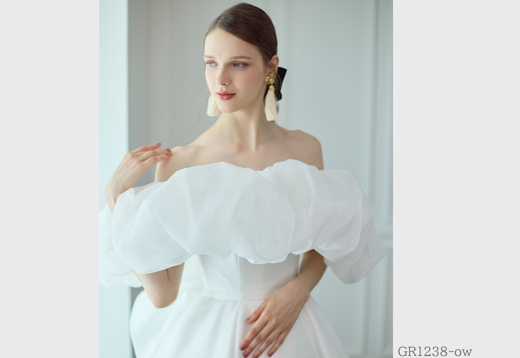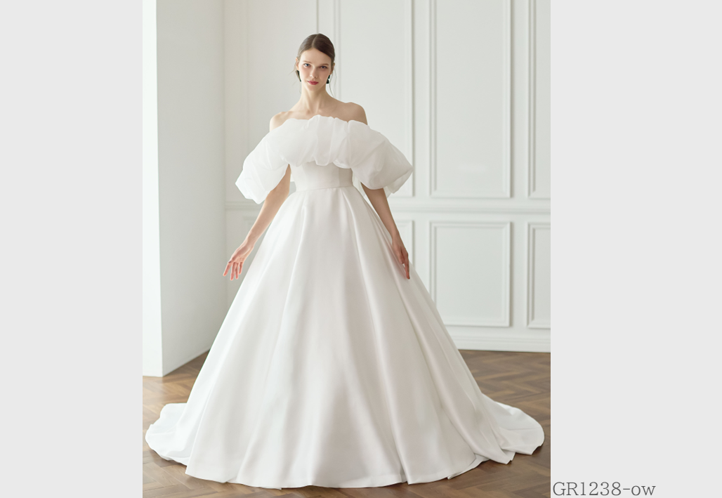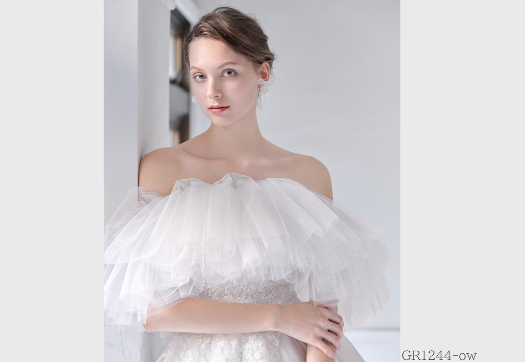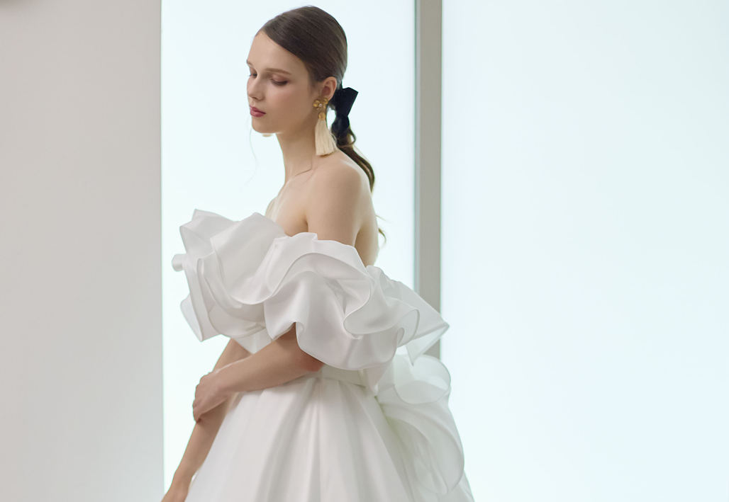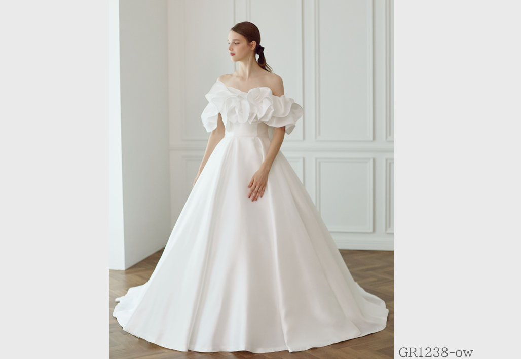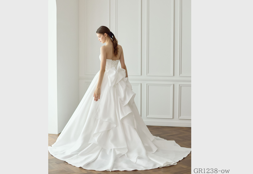大胆にビーズ刺繍やレースを贅沢に使用し、トレンドを重視したインポート感溢れるウェディングドレス。グレースが持つ独自のテイストが実現されたオリジナルスタイル。